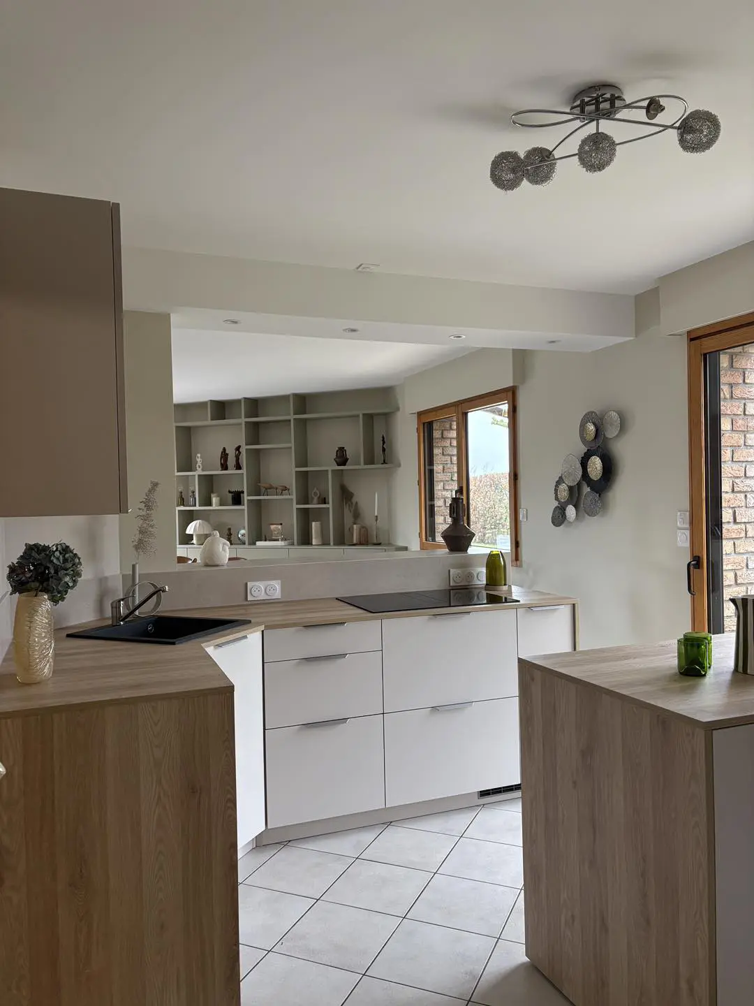 Dès les premières rencontres, l’objectif était clair : créer une cuisine ouverte, fluide et harmonieuse, en parfaite cohérence avec le reste de la maison. En étroite collaboration avec Ellestudio Architecture d’intérieur, le projet a pris forme autour d’un parti pris fort : marier les matières naturelles et les finitions épurées. L’association subtile du bois chaleureux, de la céramique élégante et des façades claires crée un équilibre visuel apaisant. Les lignes sont nettes, l’agencement optimisé pour faciliter chaque geste, et l’atmosphère générale invite à la convivialité.